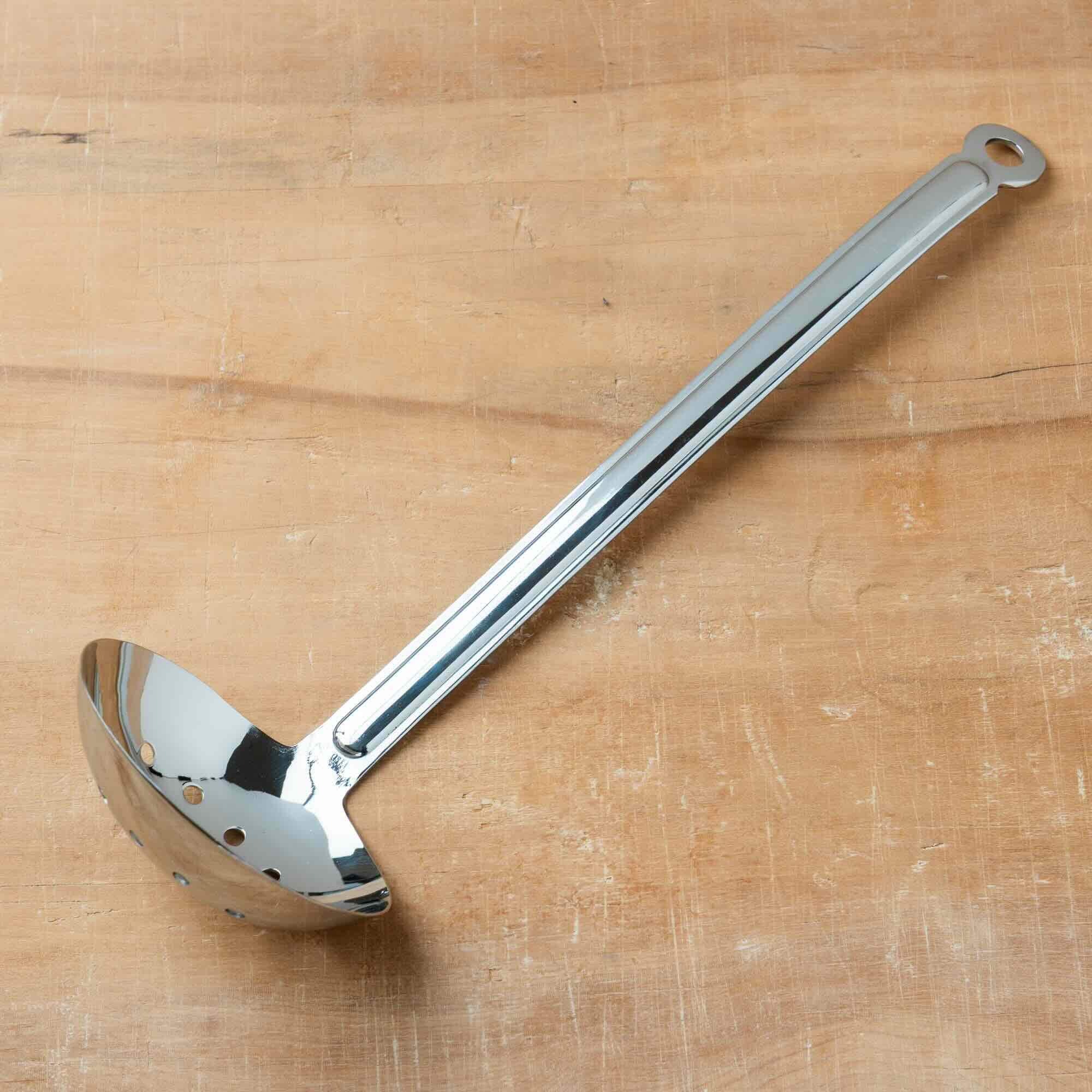 Serving utensils including tongs, ladles, dishers, skimmers, turners, and plating chopsticks